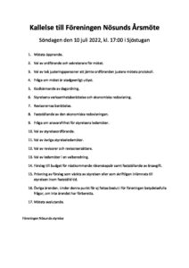 Kallelse till Föreningen Nösunds Årsmöte 2022